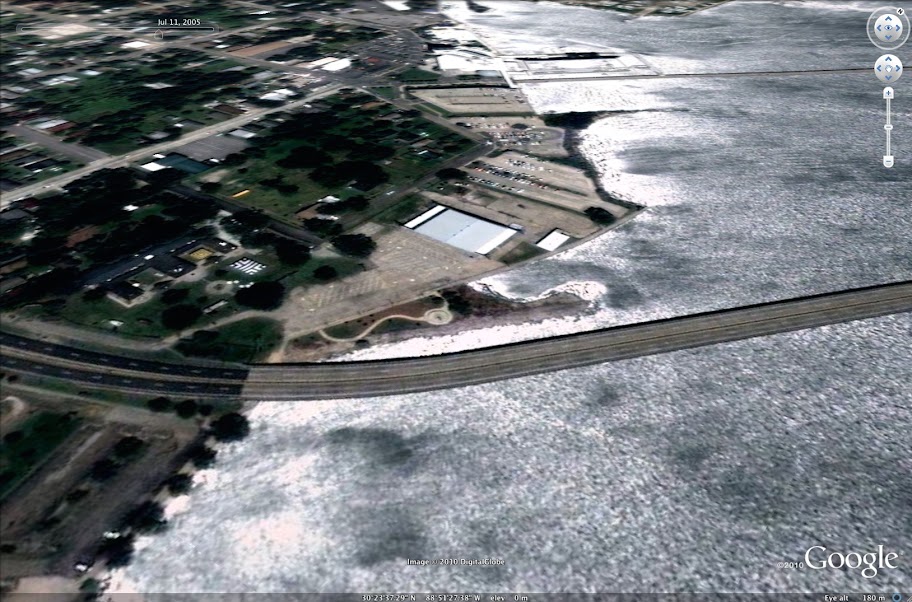 Sur le site officiel Google Latlong, Kate Hurowitz propose quelques clichés de l'évolution des paysages après l'ouragan Katrina. Deux lieux sont ainsi présentés avec des images prises à différents instants entre 2005 et 2010: Lower Ninth Ward et le pont de Biloxi Bay.
